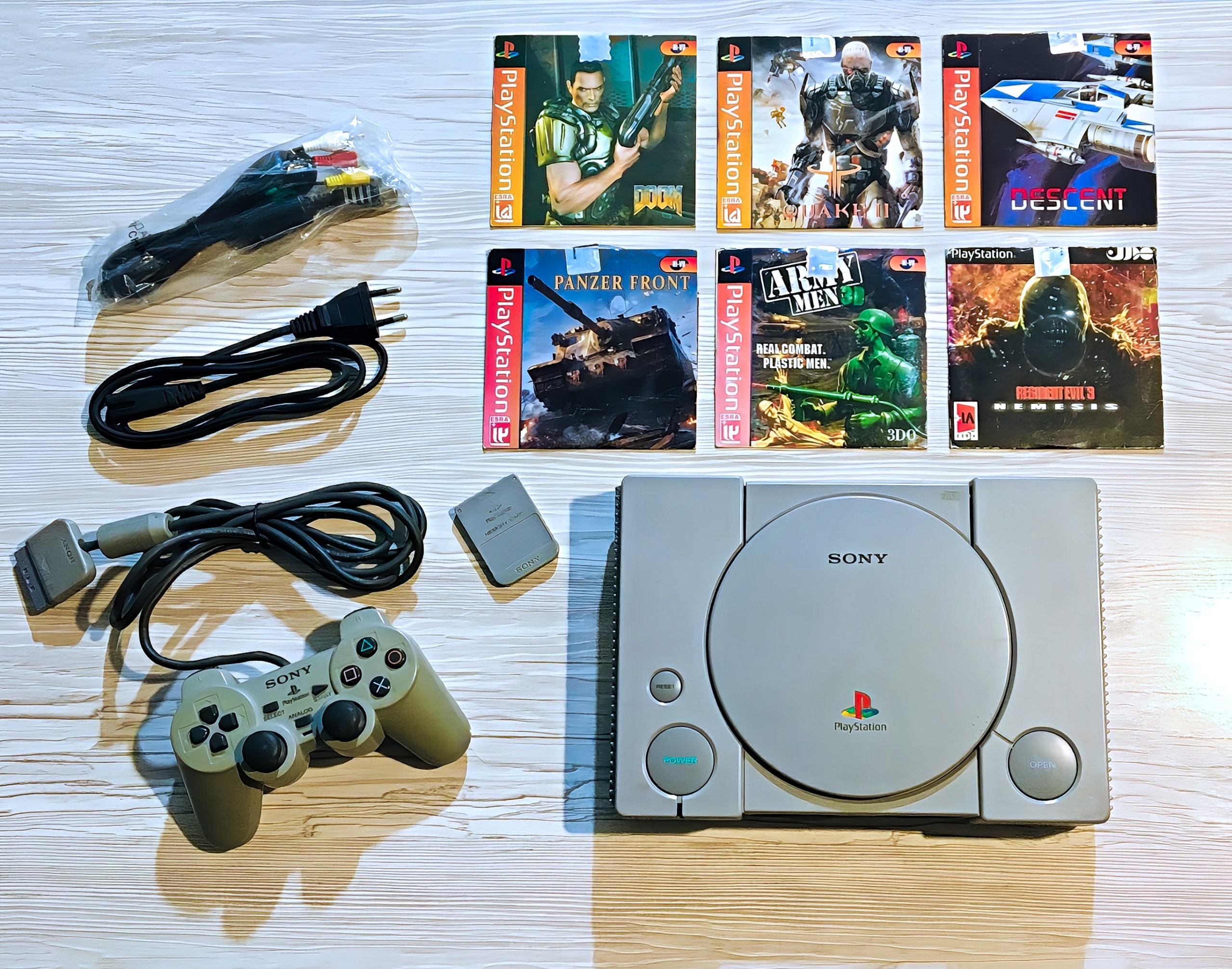 کنسول پلی استیشن 1 با دسته اصلی شوک دار و 6 بازی نو و متعلقات و جعبه ◈ PS1